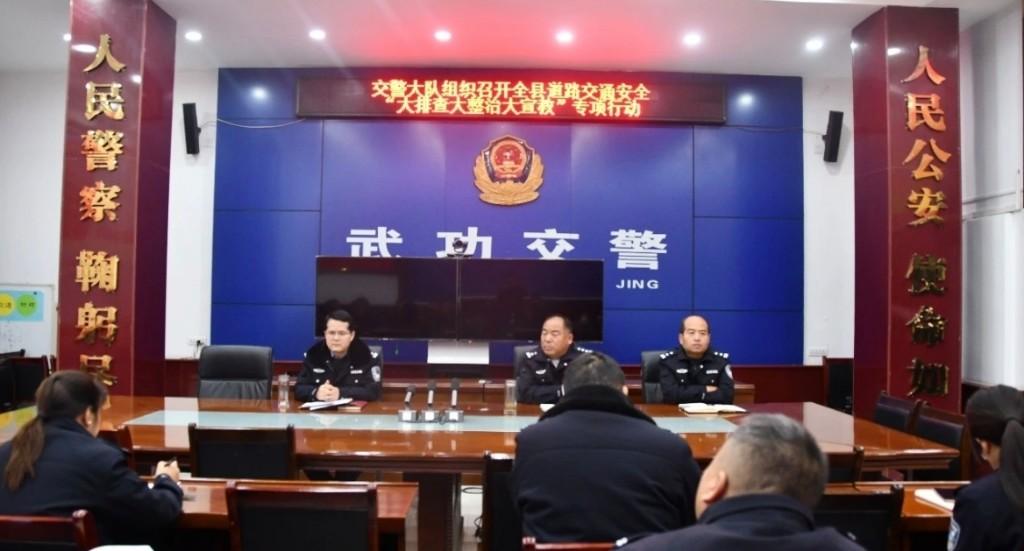 三秦都市报-三秦网讯(王维 弓伟斌)近日,咸阳市武功县公安局交警大队召开全县道路交通安全“大排查、大整治、大宣教”专项行动部署会,传达贯彻市交警支队会议精神。交警大队班子成员及各科所队室负责同志参加会议。