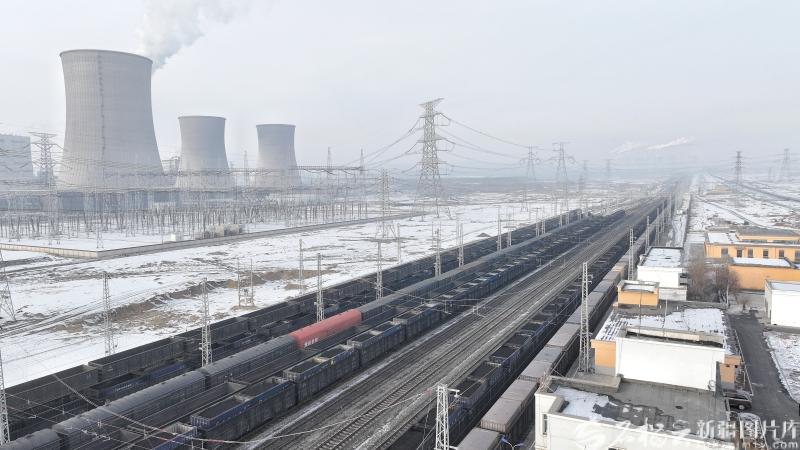 乌将铁路准东北站,满载煤炭的列车停靠在站内。摆风亮摄