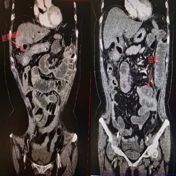 普外科周亮主任接诊后,通过腹部CT检查确诊:李阿姨的胆囊已发生穿孔,一枚结石从破口处掉入小肠并嵌顿,形成机械性肠梗阻,局部肠壁已出现明显水肿、炎症。考虑到患者年龄较大、病情复杂,医生先尝试保守治疗,但经过一周的禁食、胃肠减压、抗感染等措施后,结石仍未排出,肠梗阻症状持续存在。