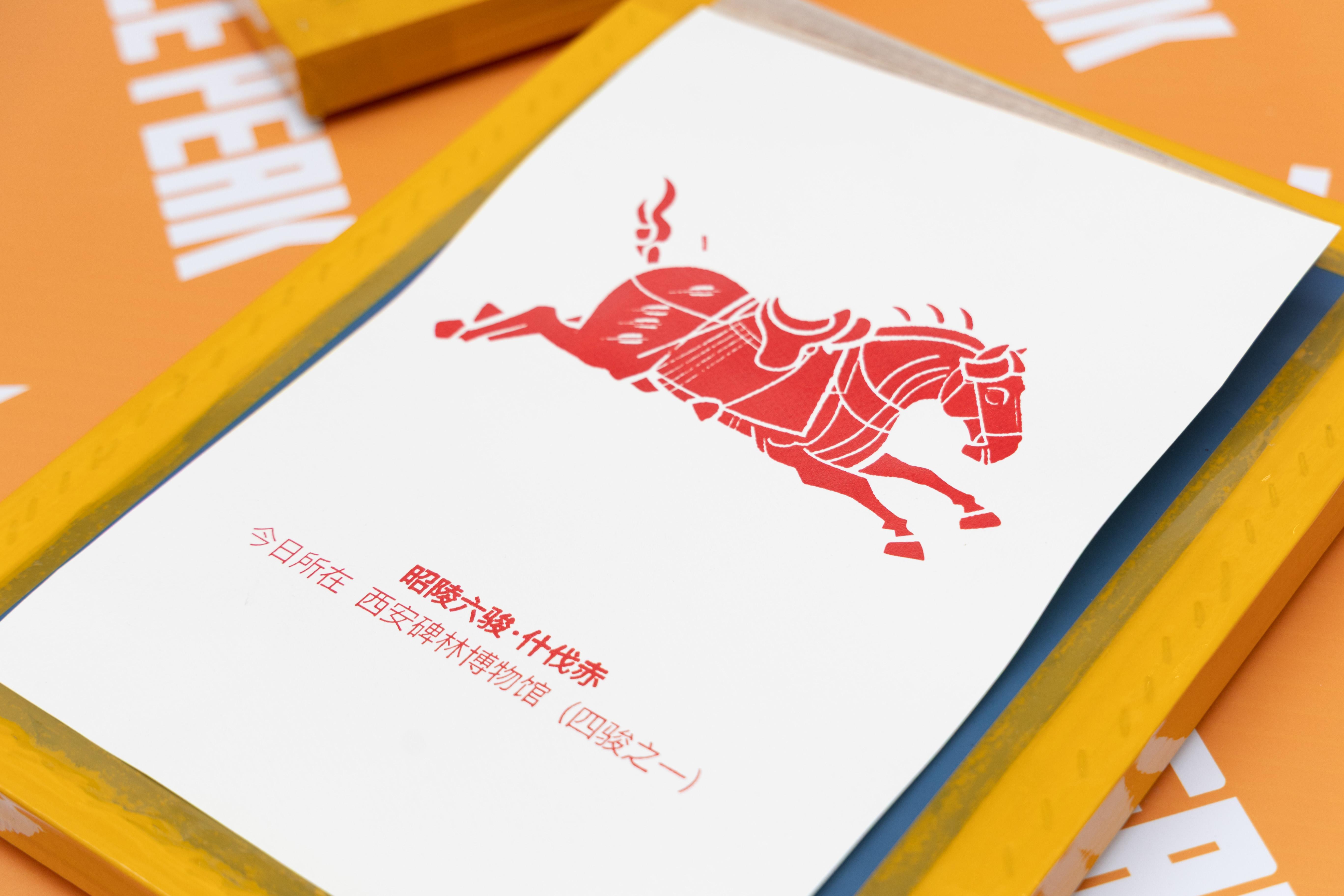 活动现场设置了丰富多样的互动环节,为市民带来沉浸式的文化体验。在“六骏文化驿站”,专业讲解员带领观众开启探索之旅,深入挖掘《昭陵六骏图》中每一匹战马背后的传奇故事,让大家对这段历史有了更深刻的认识。而在“六骏拓印工坊”,亲子家庭纷纷化身“文化传承者”,家长与孩子携手合作,用赤橙黄绿青蓝紫等缤纷颜料,小心翼翼地将颜料涂抹于拓版上,再覆纸轻压,一幅幅生动的骏马图跃然纸上。