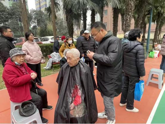 活动现场的便民服务专区也热闹非凡,各类贴心服务同步开展。眼科、耳鼻喉、口腔医院的医护人员为居民提供免费检查与健康咨询,专业理发师义务为老年人修剪头发,工作人员还为有需要的居民免费配发老花镜,“一毛钱领鸡蛋”活动深受青睐,居民们排起长队有序参与。