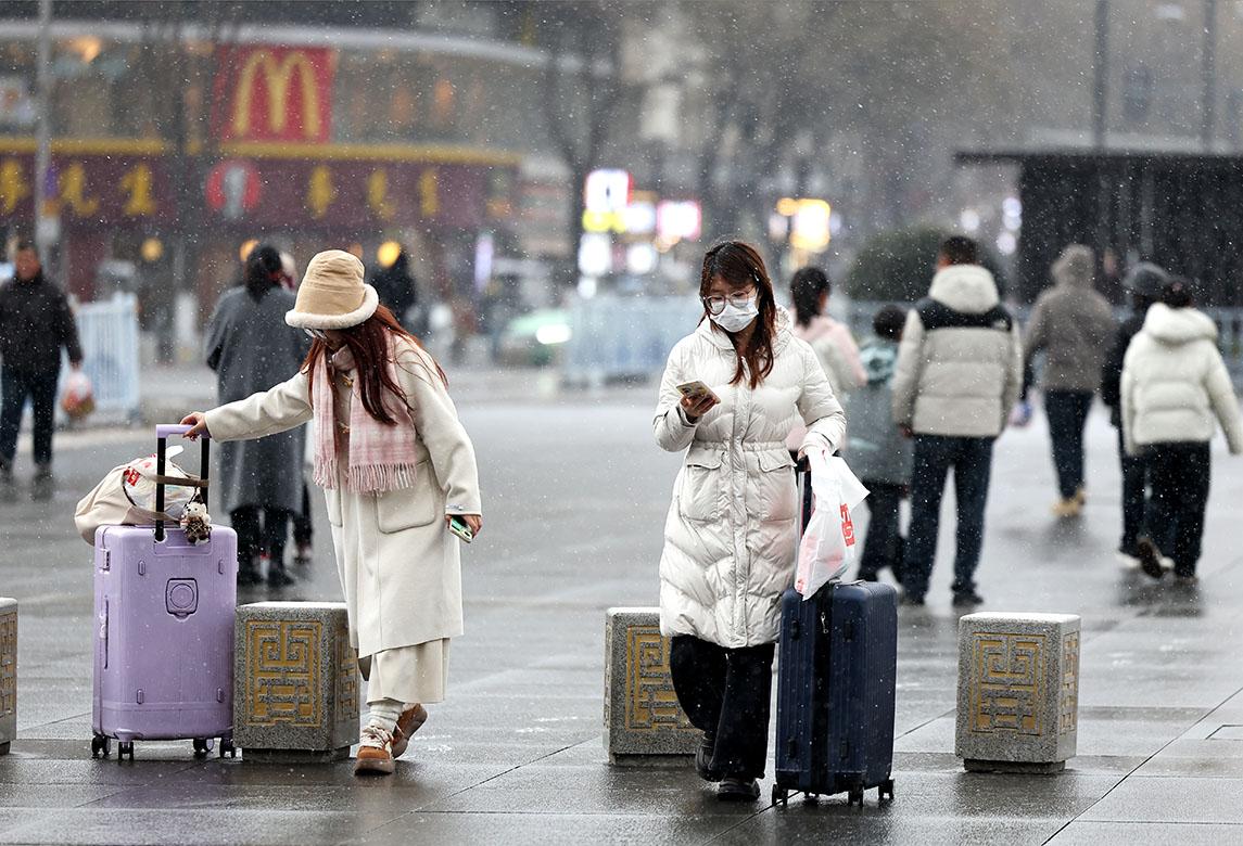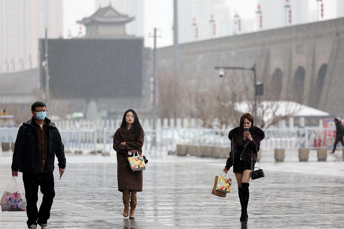 三秦都市报-三秦网讯(记者 马昭)1月19日,古城西安最低气温骤降至零下3度,天空飘起纷纷扬扬的小雪。大街小巷,出行的市民裹紧厚厚的棉衣,围巾绕颈、帽子压顶,全副武装抵御严寒。