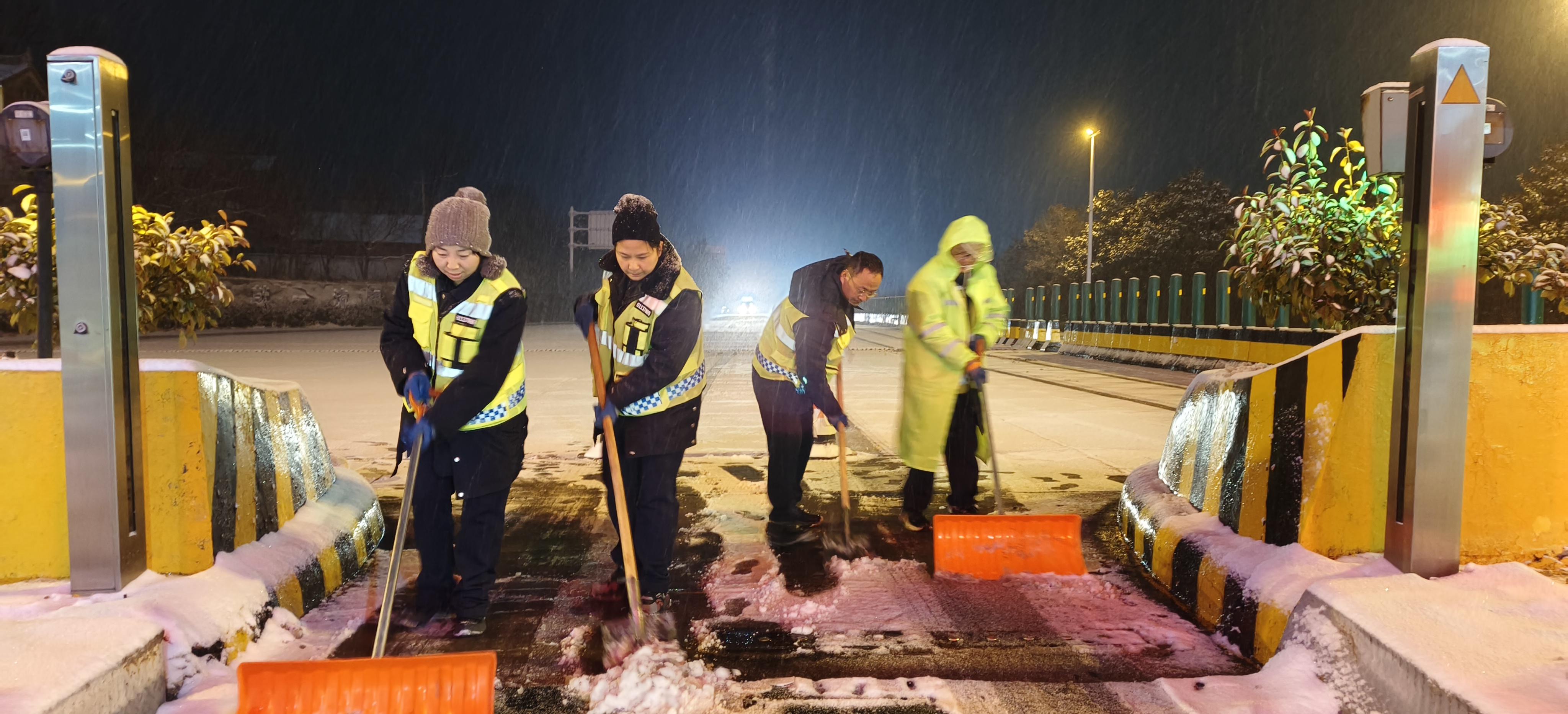 1月19日下午开始,全线降雪天气持续增强,分公司按照既定预案流程,继续采取全线融雪剂撒布,同时,号召各支部党员突击队迅速行动,投入一线除雪。在分公司本部、各收费站大家手持除雪铲,对车道及办公场所积雪进行人工清理,防止积雪结冰,影响正常车辆通行。进入夜间,为防范气温降低引起的道路交通风险,分公司再次强调,要求全体党员在岗待命,值班人员实时关注天气变化,应急队伍科学安排除雪作业,既要保证道路通畅,又要保障人身安全,全体人员时刻保持高效应急状态,坚决守护道路交通安全。