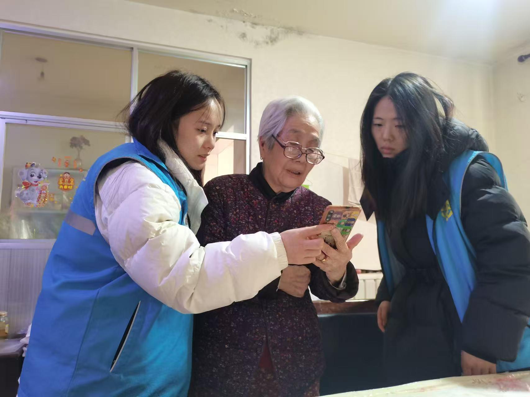 “孙奶奶,我们来看您了!雪天路滑,尽量别出门啊!”社区志愿者敲开了83岁独居老人孙桂梅的家门。孙奶奶患有风湿病,一到雨雪天气关节就疼得厉害。队员们上门和孙奶奶聊天唠家常,关心老人的身体状况,并登记需要代办的事项。孙奶奶感动地说:“太感谢你们了,下这么大雪还惦记着我……”孙奶奶眼眶湿润,握着志愿者的手久久不放。