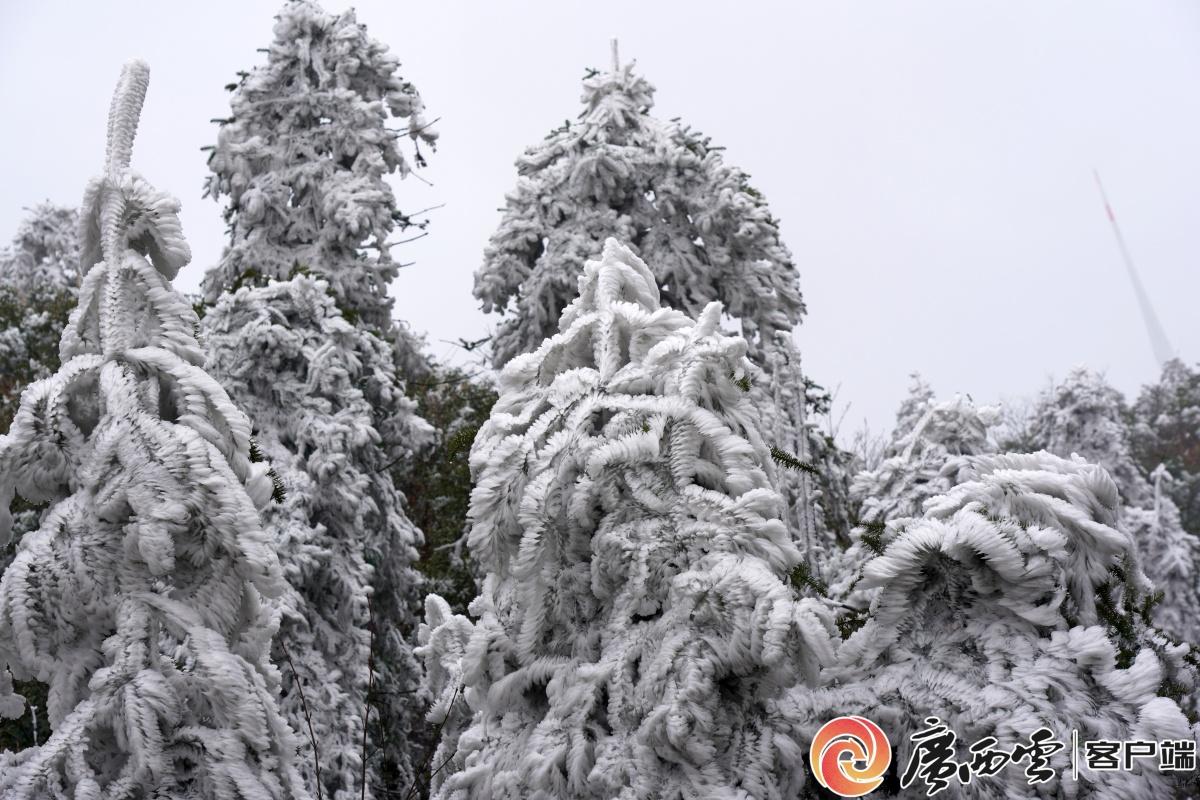 1月3日,在桂林市全州县白宝乡黄花岭绝美雾凇与浩瀚云海完美邂逅,构成震撼的自然奇观。 唐广东 摄