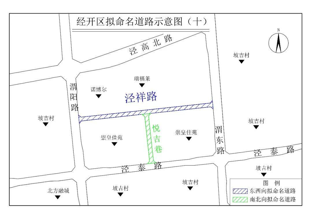 命名依据:上述两条道路位于崇皇集中安置小区“崇皇佳苑”北侧和中间,采用“泾祥”“悦吉”作为道路专名,寓意生活祥和顺利、群众安居乐业之意,并与周边已有的泾泰路、悦来巷等形成系列道路的命名体系。