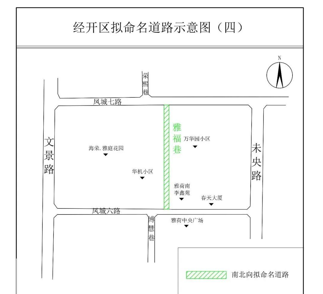 (七)雅福巷(Yǎfú Xiàng):该路南起凤城六路,北至凤城七路,位于万华园小区西侧,长440米,宽20米。