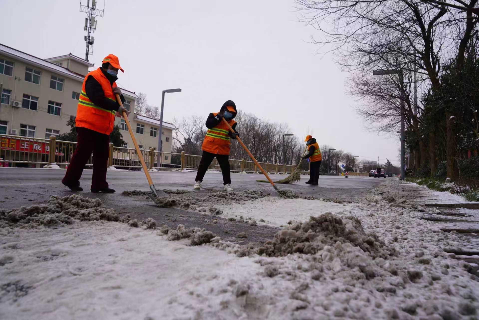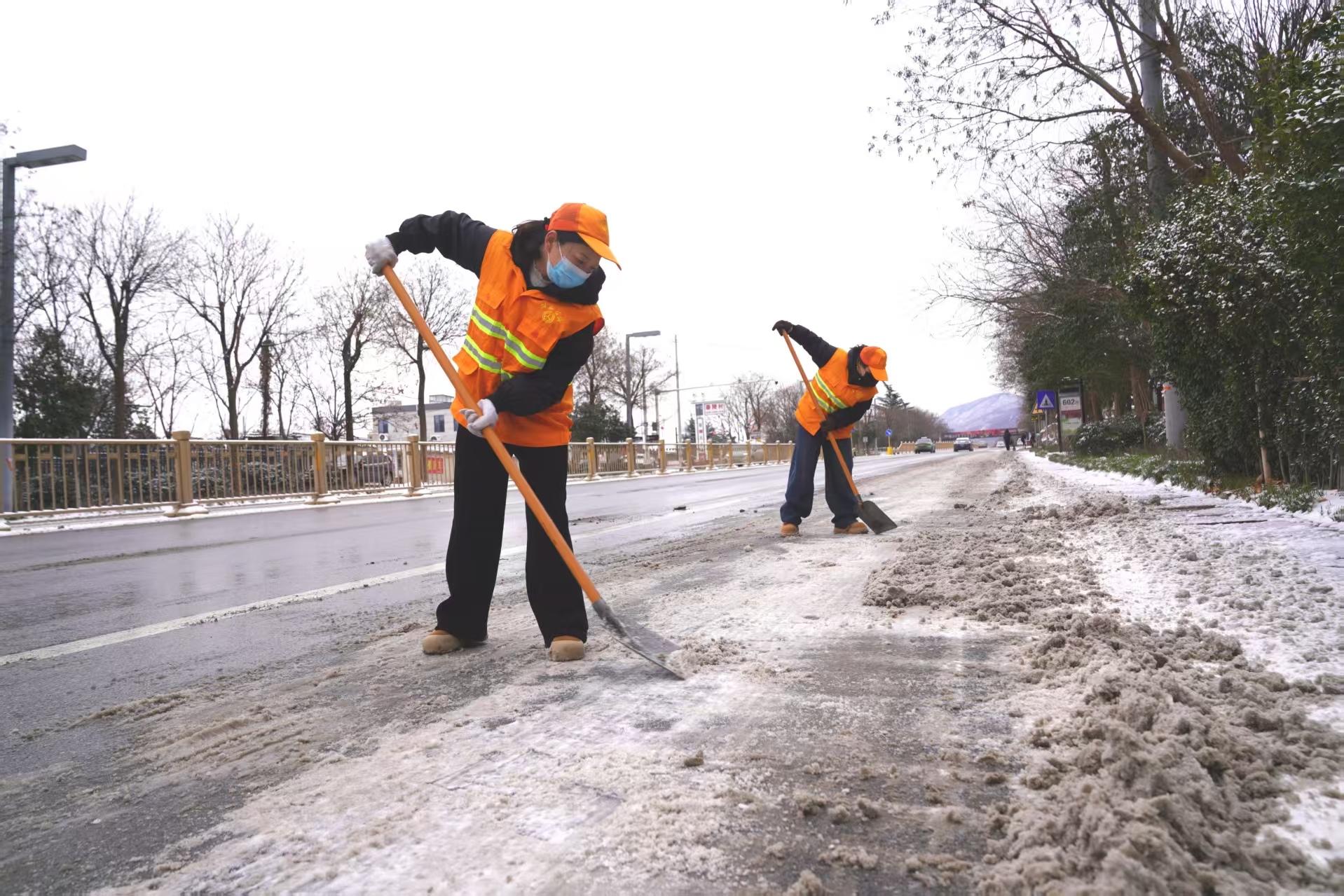 “如果积雪不及时清理,就会长时间发生结冰。”1月20日清晨五点多,天还未亮,秦唐大道上,王欢和同事们已经开始清扫积雪工作。