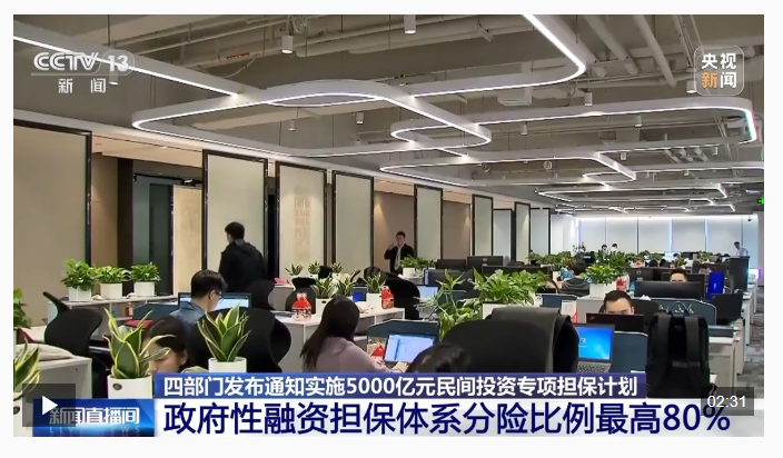 中央财经大学国家财经战略研究院中国经济研究中心主任 袁东:投资担保计划是5000亿的规模,通过中央到省份到市这么三级政府性融资担保机制的支持,能够撬动民间总的投资接近9000亿。对于当前的民间投资的稳定,促进民间投资来讲是至关重要的。