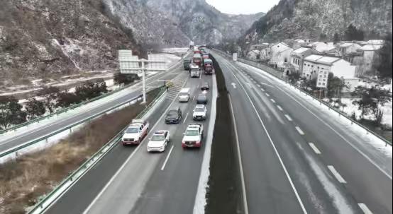 此外,在降雪减弱、天气转阴后,西安高速交警立即联合陕西交控集团蓝商分公司等部门开展“压速带道”行动,由警车带队,从秦岭山区段缓慢引导车流安全驶向平原路段。