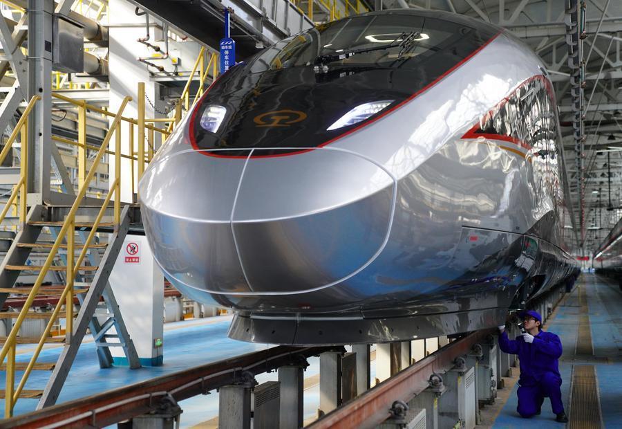 SHENYANG, Jan. 22 (Xinhua) -- As a bone-chilling cold wave sweeps across northern China, bringing blizzards and temperatures plunging to minus 30 degrees Celsius in some northeastern regions this week, the country's vast high-speed rail network continues to slice through the frozen landscapes.