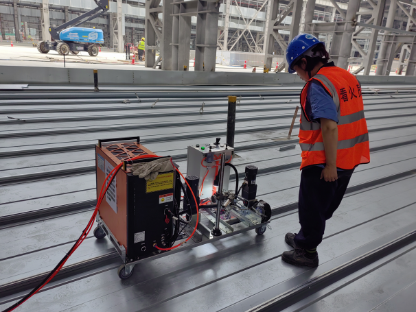 近日,中国建筑第八工程局有限公司西北公司创新使用的“钢结构厂房高压屏蔽试验大厅地坪屏蔽层智能焊接新技术”成功落地。该技术借助智能激光焊机进行屏蔽板焊接,具有精度高、速度快、焊缝均匀的优势,能确保无漏焊、透焊情况,屏蔽层施工一次达到优质标准。