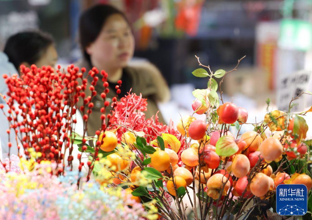 春节临近,年味渐浓。各地举办年货大集、写福字春联等活动,人们选购鲜花、中国结等饰物,迎接新春。
