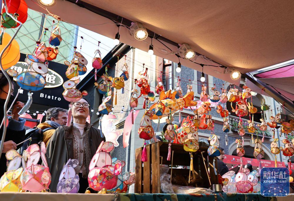 ↑1月23日,上海思南年宵花市上的传统彩灯手工艺品吸引游客驻足观看。新华社记者 方喆 摄