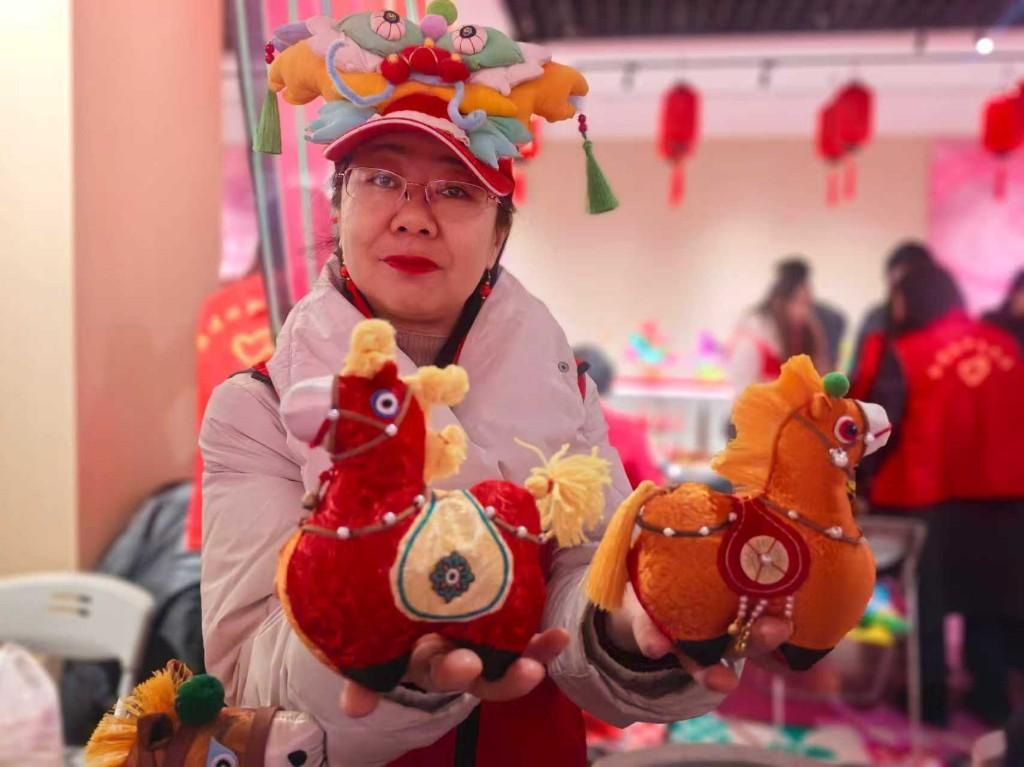 王氏布艺传承人王海燕的面前,堆满了各种样式的布艺马,或腾跃、或静立、或颔首,惟妙惟肖。“制作这匹寓意富贵吉祥的‘唐马’,花费了十多天时间,主要的精力在作品的构思设计上。”据王海燕介绍,以这个健硕的“唐马”为例,它是在前四版的基础上反复推敲调整后的最终定稿,不但配有平安福袋,还融入了硕大的元宝,承载着马上有福、马到成功的美好祈愿。