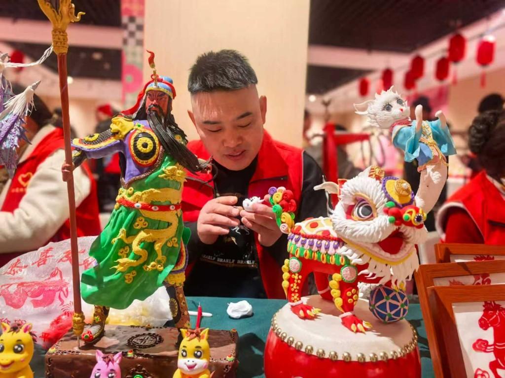 随着丙午马年春节的脚步日益临近,以马为造型和灵感的非遗作品不断涌现,成为当天活动的一大亮点。关中礼馍传承人党亚贤接连做了二十多匹马,共同构成一件名为《万马奔腾》的作品,寓示2026年万象更新、奋蹄扬鞭的蓬勃气象。