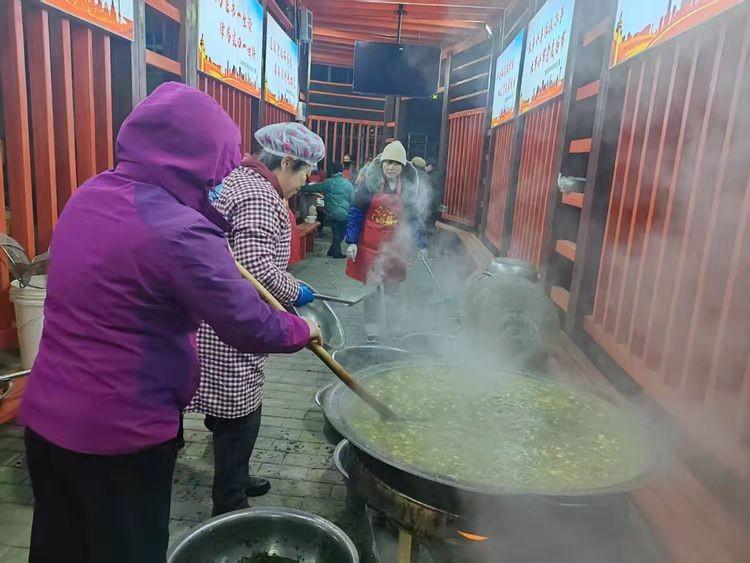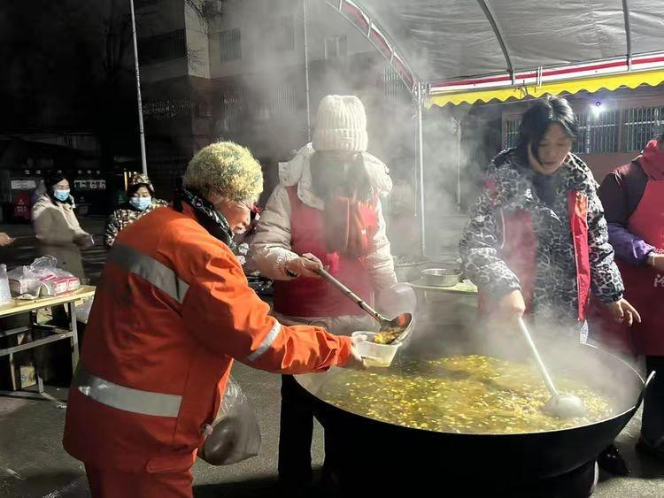 1月26日早晨,党组织搭建的平台展现资源整合效能。党员志愿者带头,与物业人员、业委会成员、石榴花家家政公司、社区能人协作:物业提供场地与基础物资,业委会发动居民拿出杂粮共熬“百家粥”,石榴花家政公司提供爱心食材。现场派粥点吸引2000余名居民参与,在互动中熟络邻里、发掘社区能人,让资源在共享中增值,情感在互动中升温。