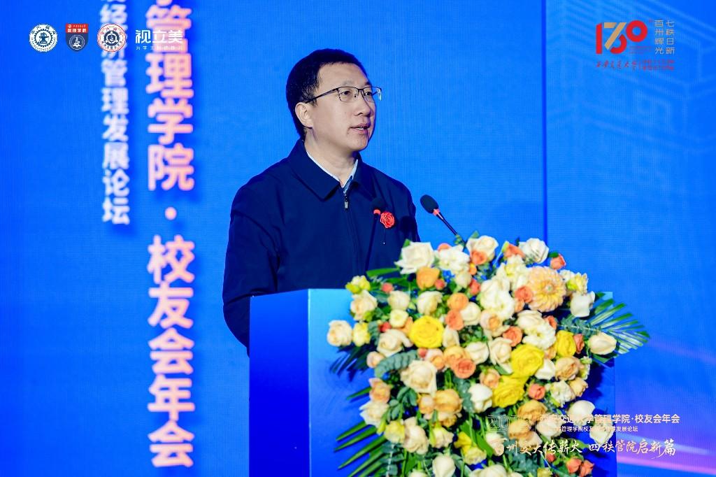 校友关系发展部主任许佳辉回顾了学校一年来的发展变化和取得的成绩,他表示管理学院校友会始终是连接校友情感、整合校友资源、服务母校发展、反哺社会建设的重要纽带,多年来为学校人才培养、产学研融合等方面作出了重要贡献。