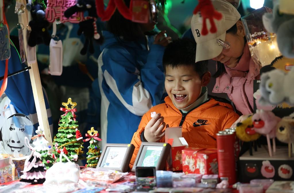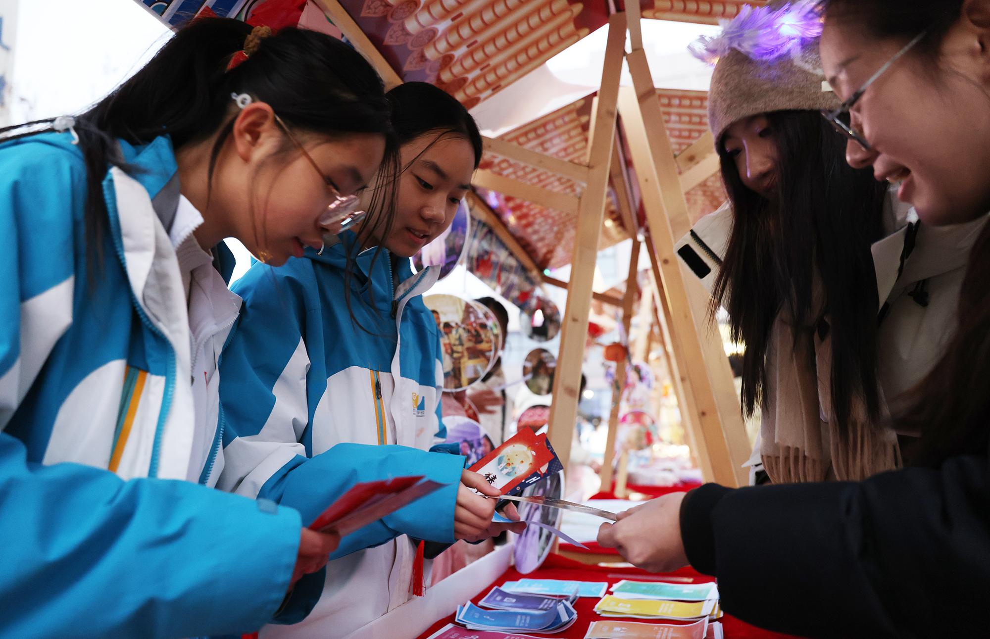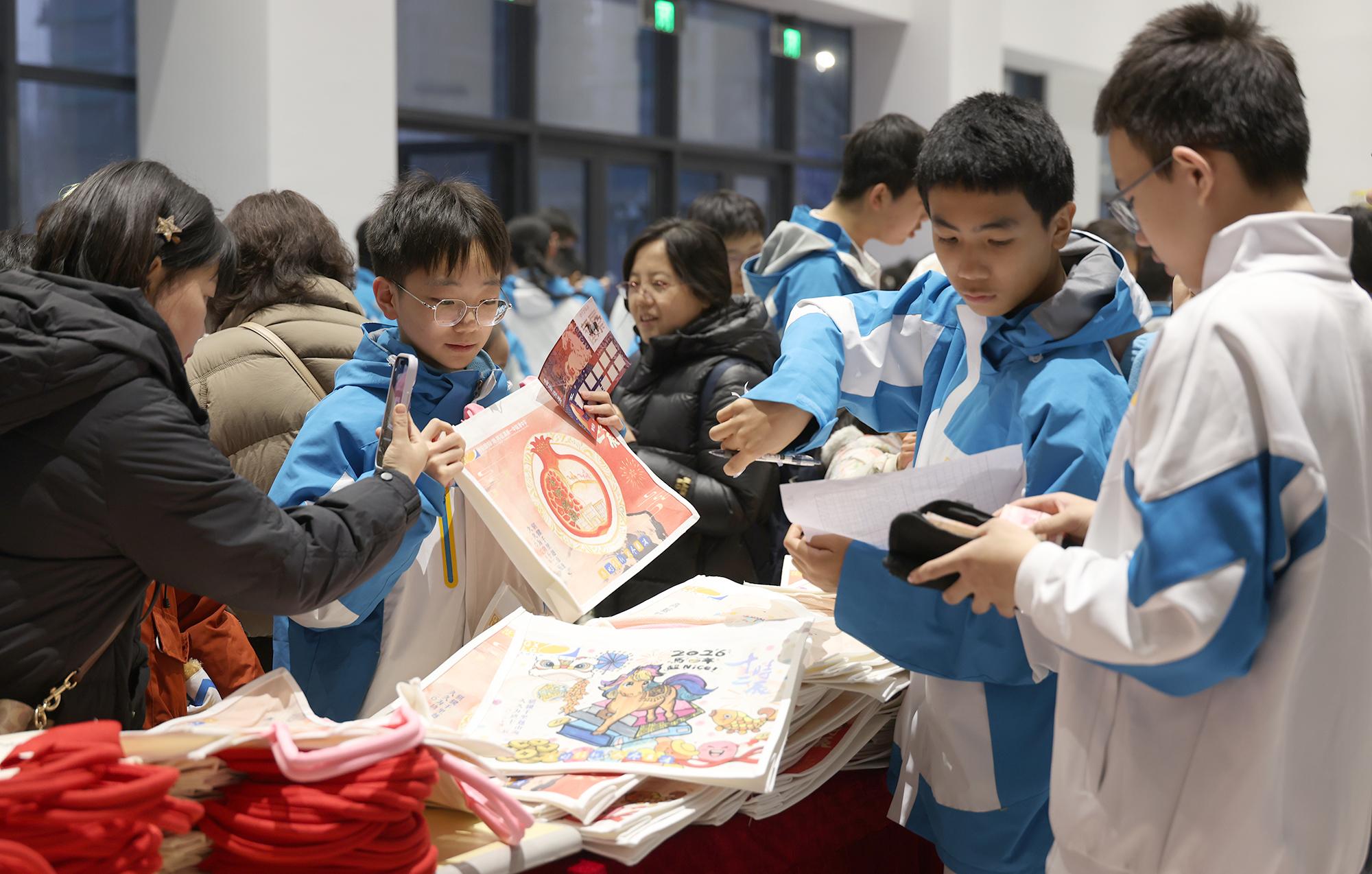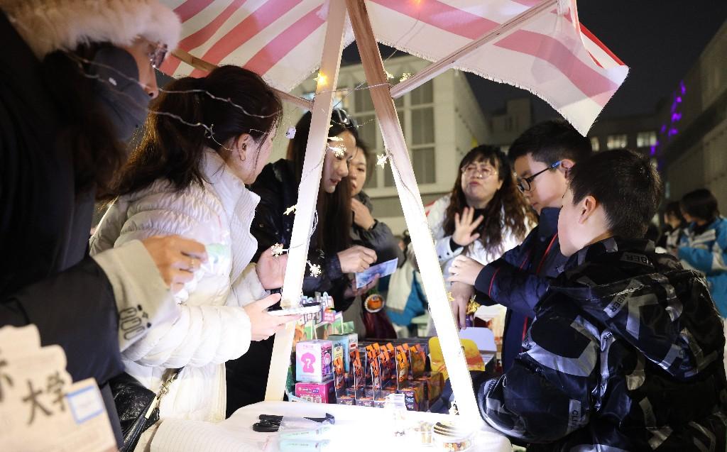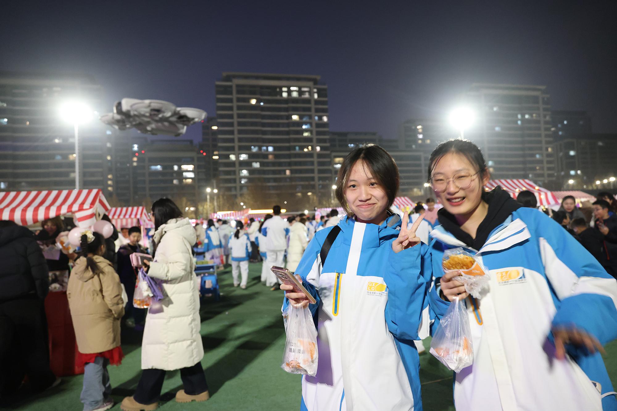游园现场分为知识竞答区、艺术展演区、创意手工区、集市区及美食街,每一处都凝聚着学生的创意与协作,也倾注了教师们的精心设计。其中,校园文创“高新熊”成为集市区的人气焦点,四款造型分别寄托“以梦为马 不负韶华”“向阳花开 光芒万丈”“朝气蓬勃 健康向上”“追逐梦想 前程似锦”的美好寓意,吸引学生排起长队。九年级学生秦梓芮表示:“即将毕业,购买‘高新熊’不仅是为留念,更是珍藏一段美好的校园记忆。”八年级刘子恒同学也兴奋地说:“我已经期待好久了,文创产品承载着我们对学校的情感,将成为我努力学习的动力之一。”