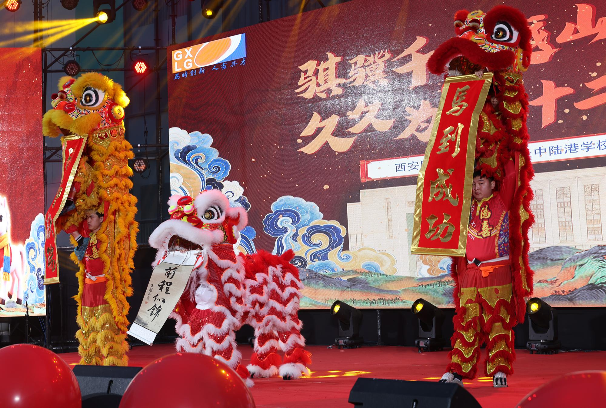 活动在欢腾灵动的《舞狮》表演中拉开帷幕。激昂的节奏和喜庆的舞步瞬间点燃现场观众热情。随后主持人宣布游园会高新陆港2026“十二时辰”游园会,通道开启,师生共同开启首扇“辰启门”,正式步入这场知识与趣味并重的迎新之旅。