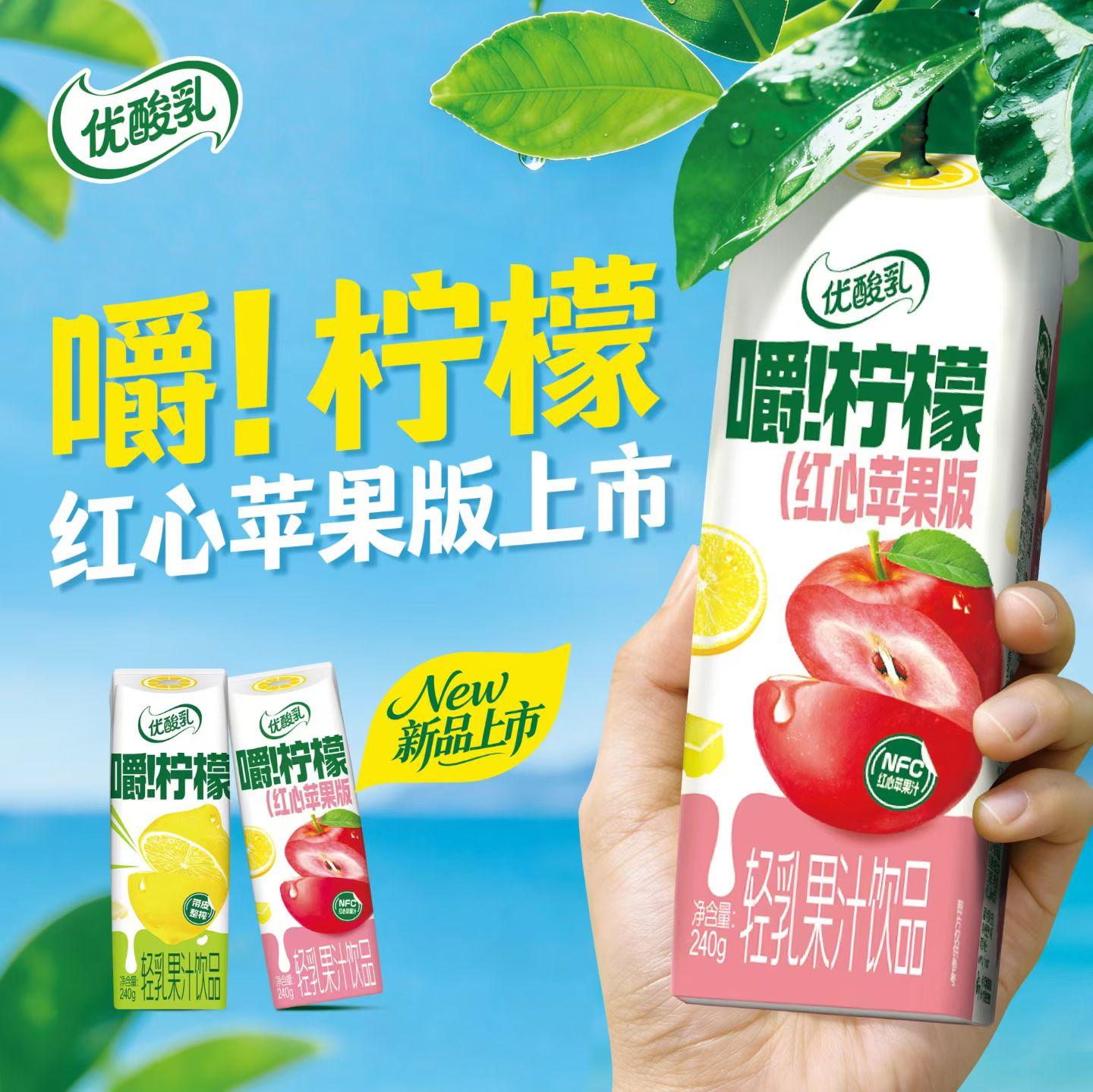 作为优酸乳深耕年轻消费市场的诚意之作,新品延续品牌“酸爽、有料、着迷”的味觉基因,更在原料与工艺上实现双重突破。为还原水果本真风味,产品采用NFC非浓缩还原工艺锁鲜红心苹果汁,完整留存鲜果原生清甜与天然营养,每一口都透着食材本身的纯粹质感,契合当代消费者对健康饮品的追求。红心苹果的温润甜润与柠檬的鲜活酸爽交织碰撞,形成鲜明又和谐的双重风味层次,入口先是柠檬的清爽开胃,尾调是苹果的清甜,味觉记忆点拉满,完美诠释“三口爱上”的全新体验。