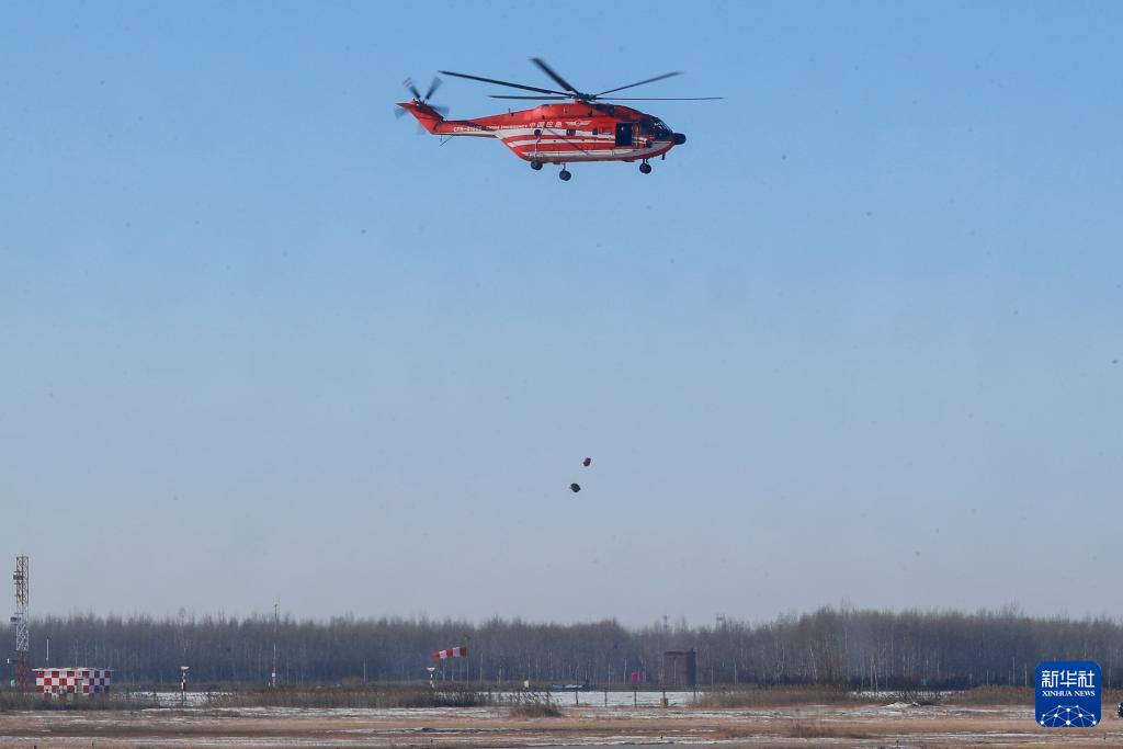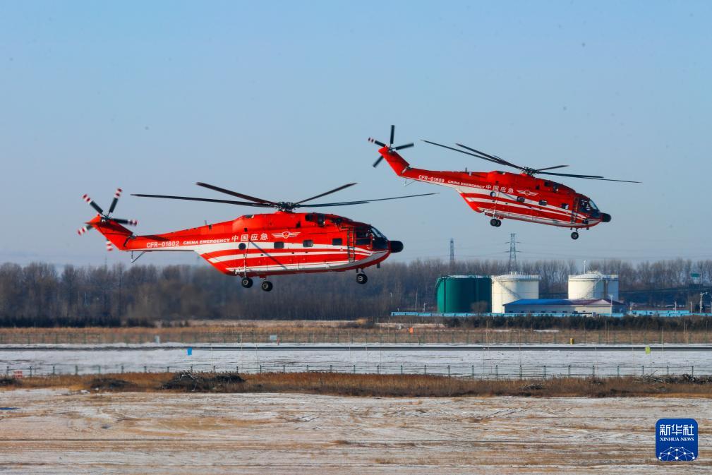 1月29日,在空投实战化训练现场,救援直升机增速飞向空投预定地点。