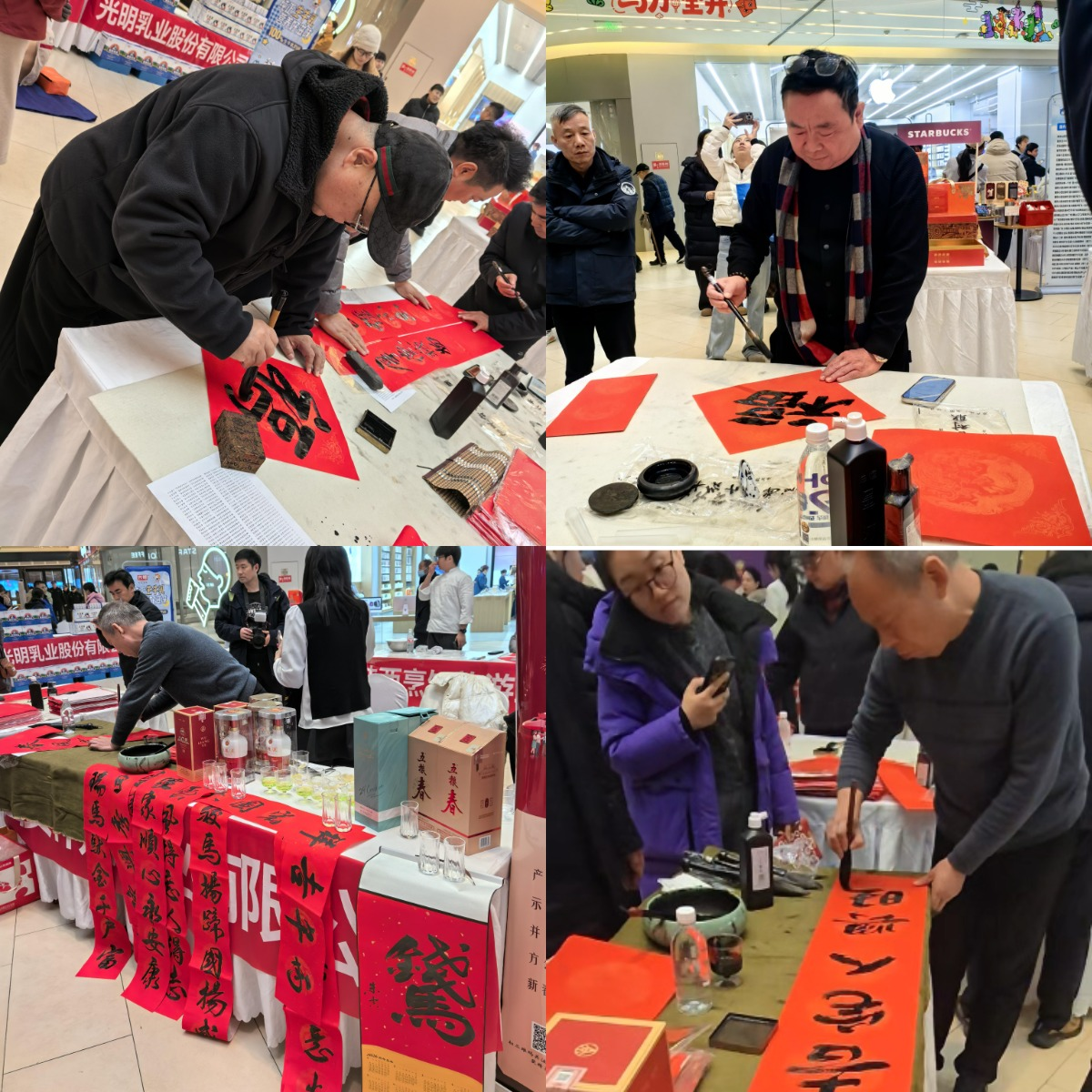 活动现场,五粮液展位前的书法送福区人气尤旺。三位书法名家受邀现场挥毫——陕西舒同书画研究院副院长、陕西省书法家协会会员刘茂林,作品雍容丰润、自成一格,更擅长将家人姓名创意融入“福”字;陕西省书法家协会会员朱空、刘宗军也以笔墨传递祝福。五粮液陕西营销大区总经理王向全亦提笔书写“福”字,赠予居民,传递品牌温情。