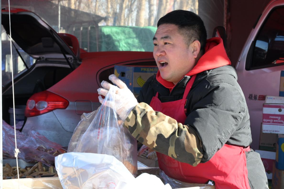 营口红旗大集上,“饼干哥”热情吆喝卖货