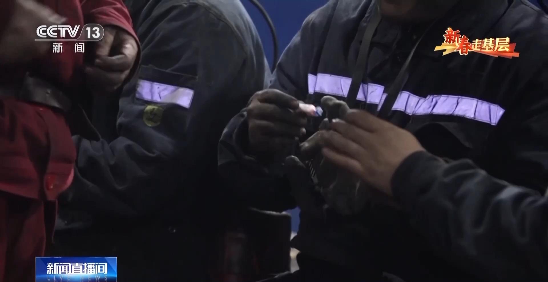 总台记者 崔肖冉:现在我们终于到了这个采煤工作面,距离地面的垂直距离大概有400多米,现在我们要钻过这个铁桥,来到采煤的一线。