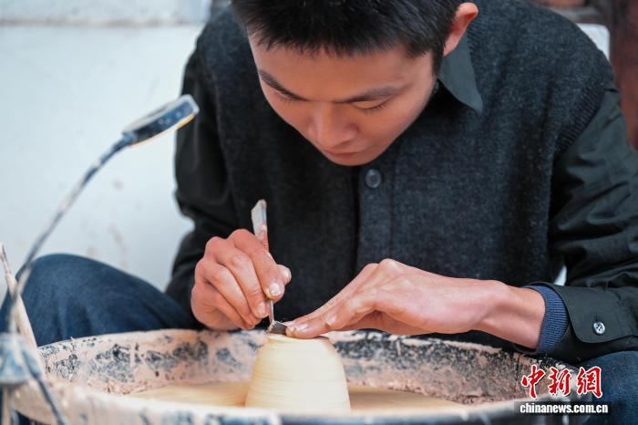 马年新春将至,成都新津太平老街一间名为“云潇茶空间”的小院里,29岁的台湾青年张昀澂正低头仔细修整手中已成形的茶杯坯体。今年春节,他将与女友一家以及来自五湖四海的茶友在老街共庆佳节,亲手制作的陶瓷茶杯则是他精心准备的年礼。