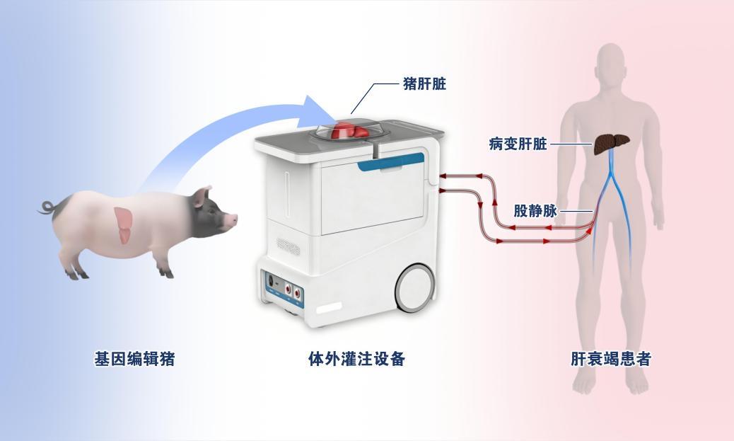 “基因编辑器官+体外生命支持”组合模式,开创了异种器官应用新模式,无需移除患者自身器官即可实现功能代偿。该技术核心创新在于实现“三重突破”:多重基因编辑策略,创造目前最精简的“人源化”猪肝脏;桥接治疗理念,不同于永久性器官移植,体外肝脏交叉循环系统作为“生命外挂”提供临时支持,大幅降低免疫抑制负担;闭环灌注技术可精准控制温度、压力、氧合和抗凝,维持离体猪肝脏生理活性。