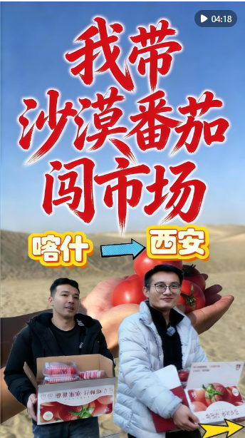 “喀柿红”产地在新疆塔克拉玛干沙漠边缘的伽师县。这是一种番茄新品种,是在沙漠大棚里培育,用当地淡化后的盐碱水浇灌。用陈镇的话说,这小小的番茄里面都是科技,但没有“狠活儿”,是完全绿色放心的好产品。