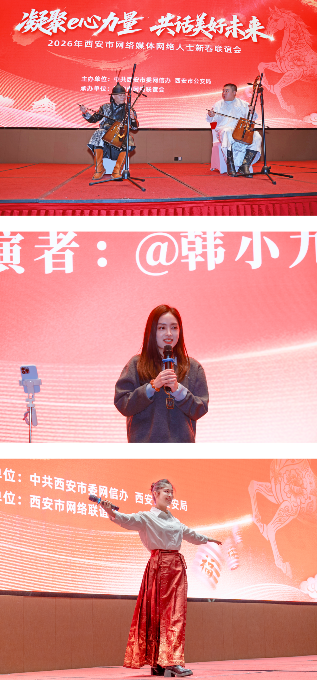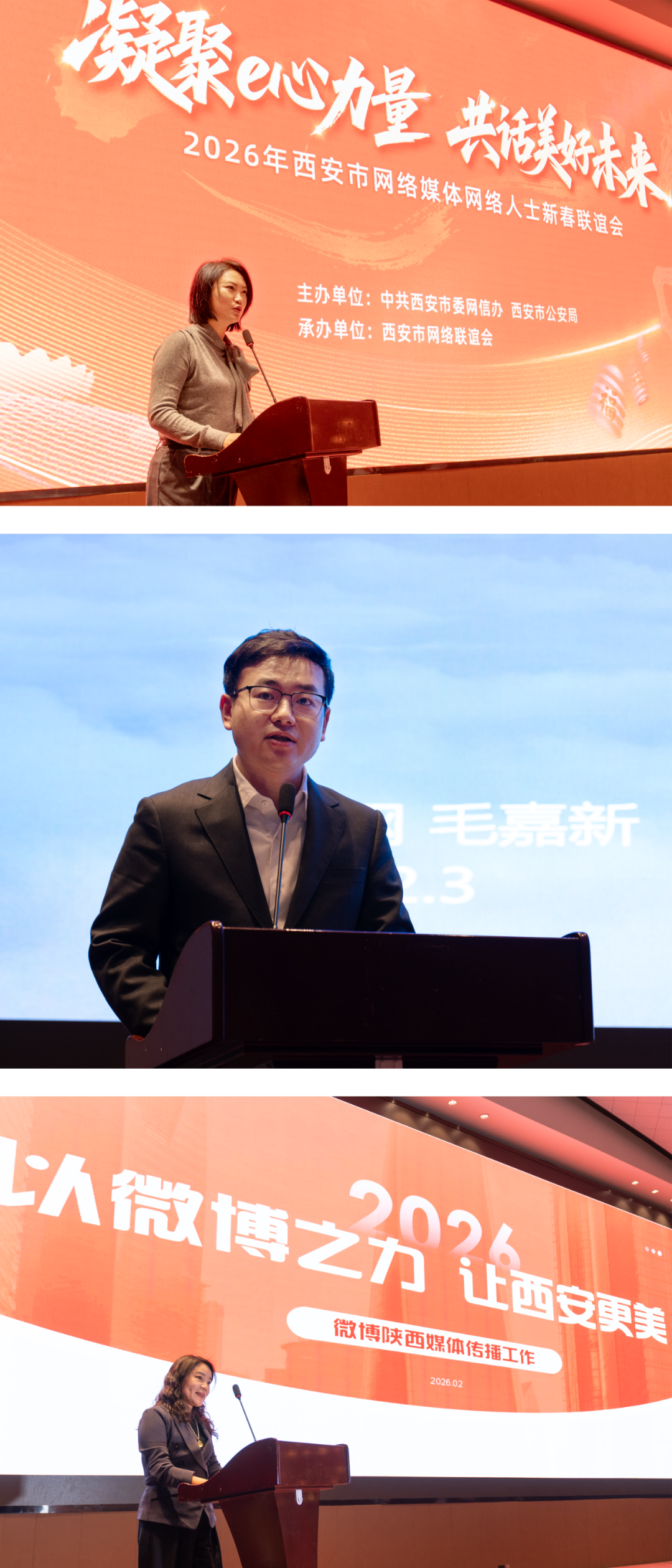 律回春渐,佳节将至。2月3日,由西安市委网信办、西安市公安局主办、西安市网络联谊会承办的“凝聚e心力量 共话美好未来”2026年西安市网络媒体网络人士新春联谊会举办。市委宣传部、市委网信办、市公安局、市文旅局、市市场监管局、市税务局相关负责同志与网络媒体、网络人士、MCN机构、网络社会组织代表共70余人齐聚一堂,回顾2025年网络内容建设成果,共绘发展“同心圆”。
