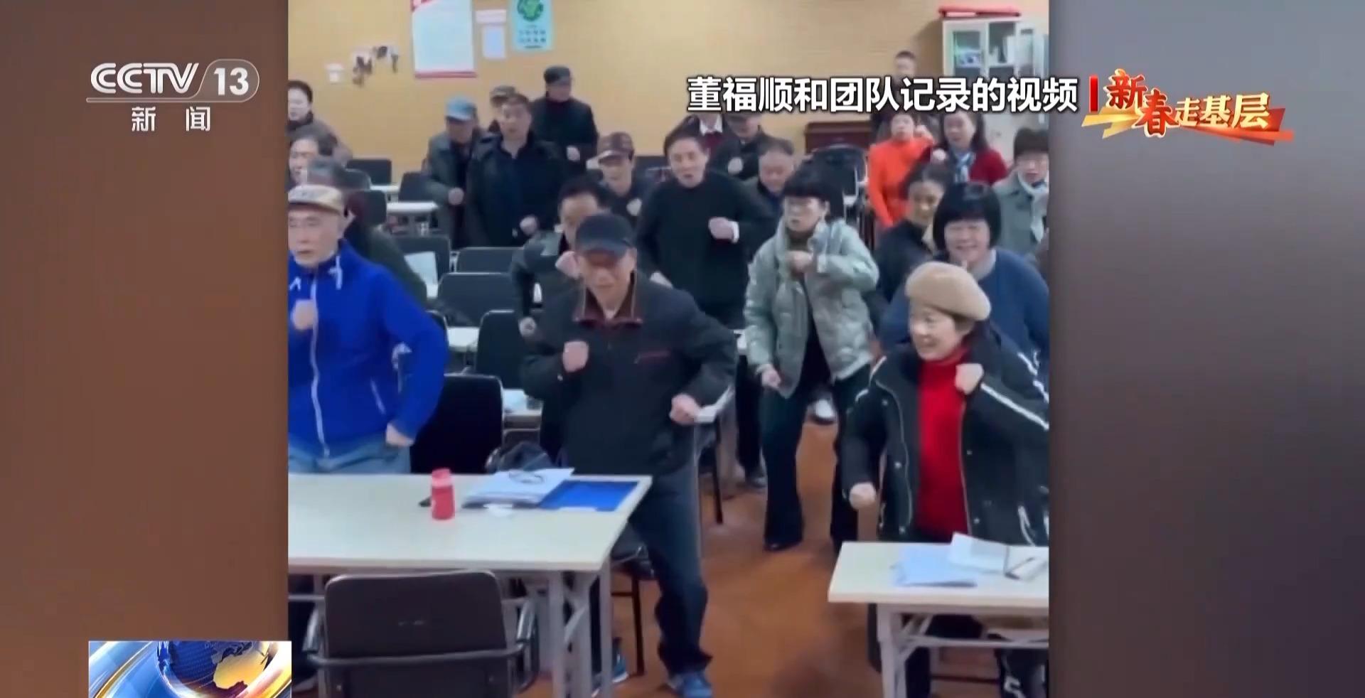 2023年,在给老年大学上课时,小董和小伙伴们拍下这段视频。老人们的动作虽然不太整齐,但个个都很投入,主打一个“反差萌”。没承想,视频发到网上就火了。有人留言说,“银发族治愈了年轻人”,也有人说,“这样的音乐老师最好来上一打”。