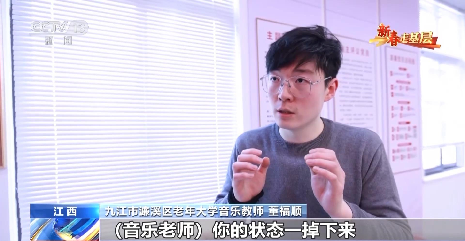 九江市濂溪区老年大学音乐教师 董福顺:音乐老师的状态一掉下来,老年人他就困了,10分钟就困。但是如果我要用我的这种感情,不停地去带,你会发现他们会越来越开心。我想要的就是这种效果,你一定要100%、200%甚至300%的这种热情带动,他们可能才有40%到60%、60%到80%的这种回馈。