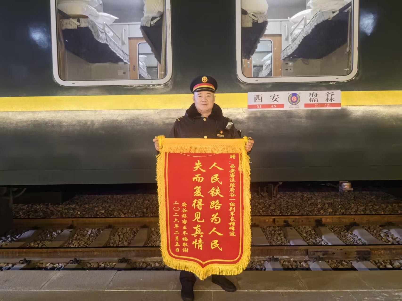 回到府谷后,旅客王冬梅特意定制了一面锦旗送给穆峰波表示感谢。