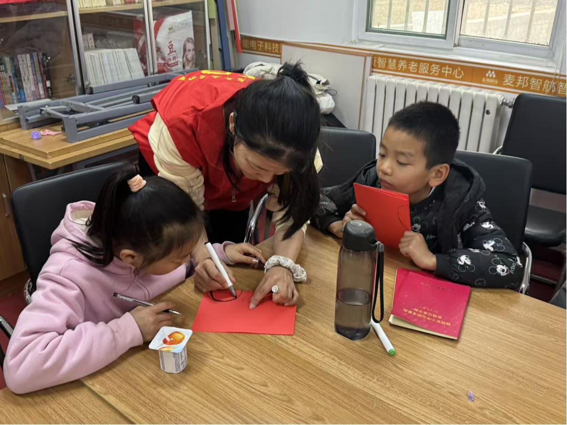 手作实践环节成为活动亮点,孩子们自主选择剪纸或平安结创作方向,在志愿者的手把手指导下,专注投入折叠、剪裁、编结等操作。红色宣纸在指尖翻飞,变成寓意吉祥的喜字、灵动可爱的生肖图案;彩色玉线经缠绕穿插,编织成象征平安的传统绳结。中场休息时,孩子们在轻音乐氛围中交流创作思路,分享遇到的小难题,现场充满了欢乐的氛围。