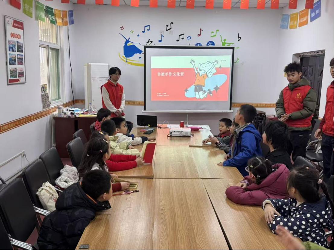 活动以“指尖传非遗,童心筑文化”为主题,精心设计“文化导入—手作实践—中场休息—作品升级—成果展示”全流程体验。在文化导入环节,大学生志愿者通过经典作品图集展示和非遗纪录片片段播放,生动讲解了剪纸与绳结的历史渊源、艺术特色及吉祥寓意,“你见过哪些剪纸图案”“平安结代表什么美好愿望”等互动提问,点燃了孩子们的探索热情。