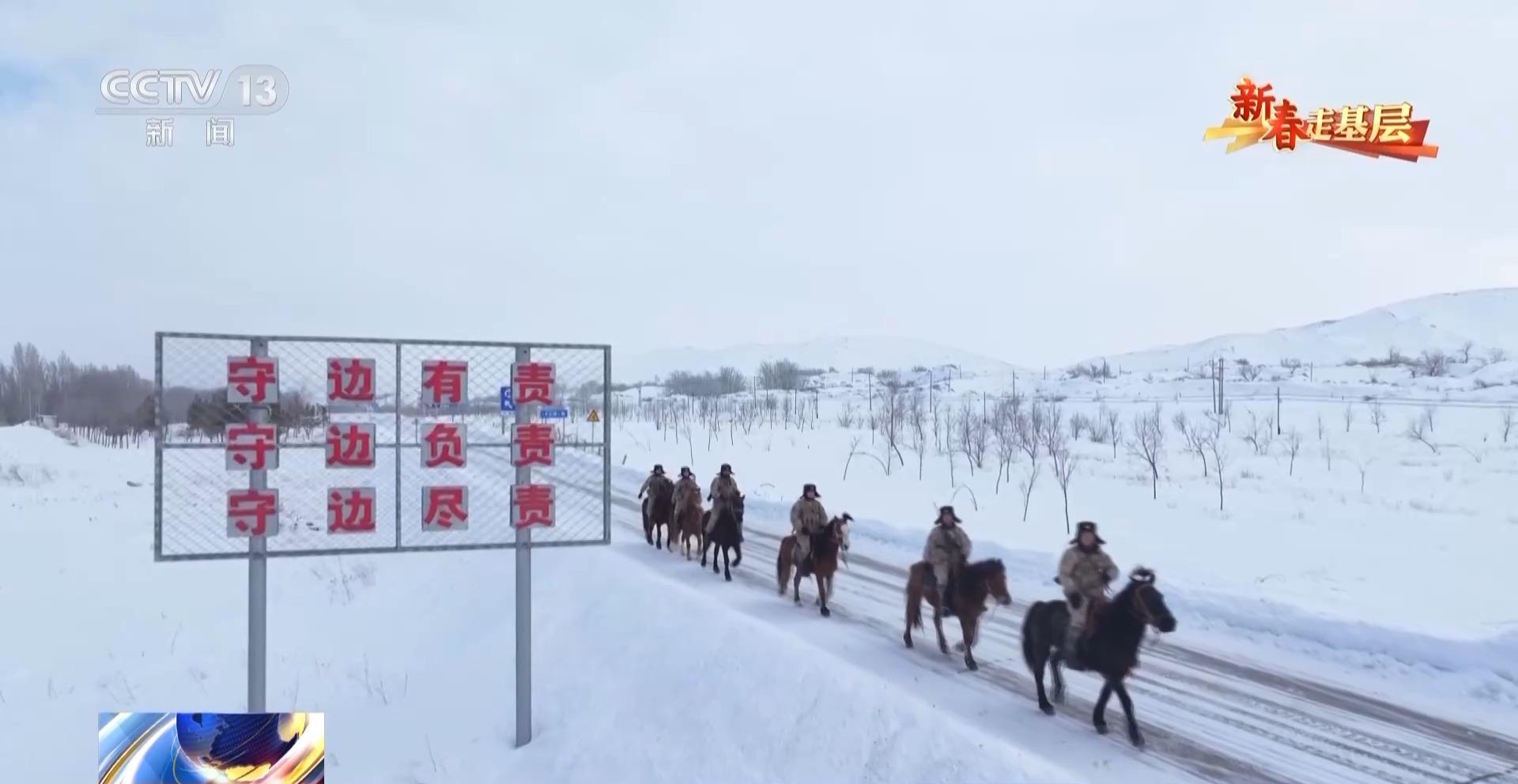 总台央视记者 刘洁:官兵们正在进行骑马巡逻的准备,每匹军马都系上了鲜艳的红头绳,给冬日的边关带来了暖暖的年味。这些军马是官兵们巡逻途中最亲密的战友,今天他们再一次踏上边防巡逻路,用坚守迎接新春。