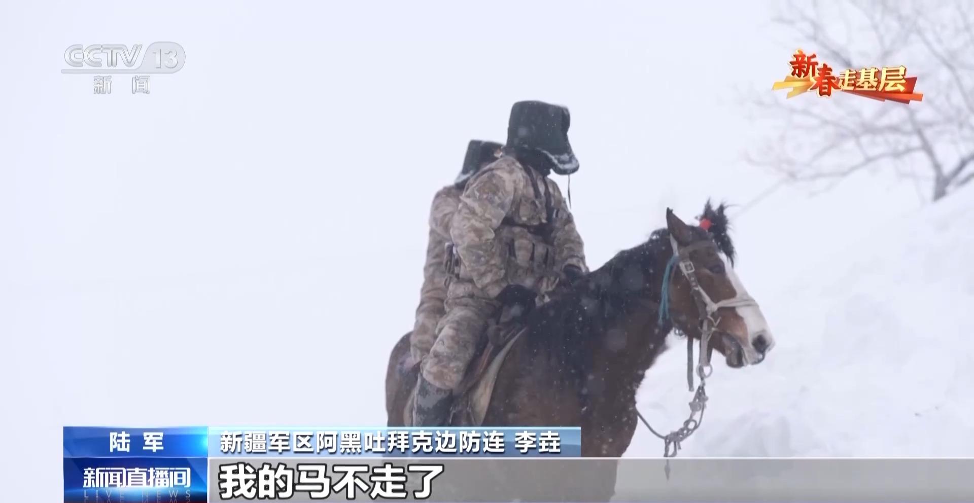 总台央视记者 刘洁:第一次骑上马背,比想象的要高很多,而且颠簸得厉害,心里很紧张。双腿要时刻夹紧,双手要攥缰绳,才能在雪地上保持平稳。仅仅是跟随队伍缓行,不一会儿就会觉得腰腿酸软。可想而知,官兵们长年累月在复杂的地形中骑行巡逻,需要多么过硬的本领和毅力。