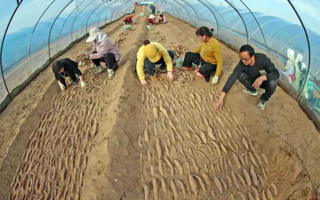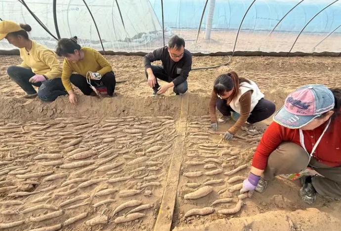 官池镇得天独厚的自然条件为红薯产业发展奠定了坚实基础。该镇坐拥沙苑优质沙质土壤,土质松软肥沃、透气性极佳,是红薯种植的天然沃土,更是大荔县红薯种植的核心区域。尽管当前仍处于早春时节,但当地已率先启动红薯育苗工作。在育苗基地内,技术人员全程跟踪指导,农户们分工明确、协作默契,动作娴熟地将一颗颗优质薯种整齐排开,覆膜作业有序推进,严格把控育苗各环节质量,全力确保薯苗健壮、长势良好。
