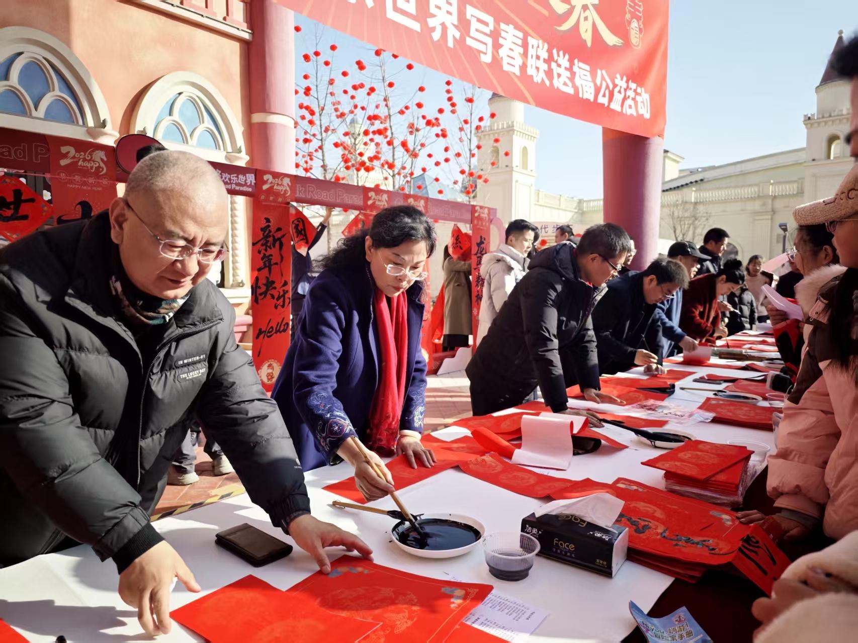 据悉,本次写春联送福活动为即将到来的丝路欢乐世界“第三届新春欢乐季”奏响了温馨前奏。春节期间,园区将以“丝路中国年·世界共团圆”为主题,围绕“十大主题活动、三大王牌演艺、打卡七大街区、体验百种潮玩”脉络全方位展开,深度融合丝路风情与中国传统非物质文化遗产,为市民游客营造一个充满欢乐与文化气息的节日氛围。