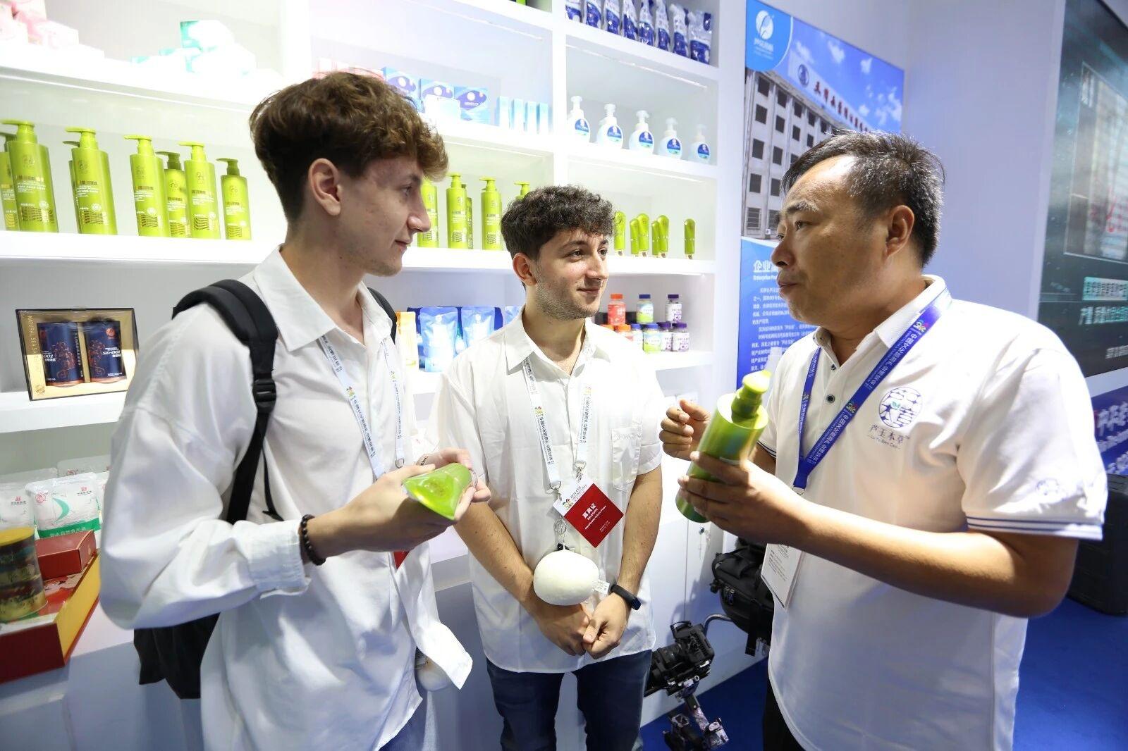 博览会上,工作人员推介长芦汉沽盐场洗护产品(央广网发 滨城发布供图)