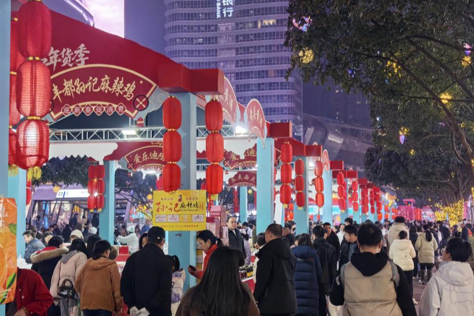 央广网重庆2月9日消息(记者白刁尹 实习记者周长江 张嘉玥)灯笼映红了蜿蜒的梯坎,喧闹声、欢笑声漫过热闹的坡道……春节将至,山城重庆年味渐浓,多场特色新春年货市集焕新登场。在重庆解放碑、观音桥、十八梯等商圈景点的市集上,琳琅满目的摊位与趣味互动体验交织成景,为市民游客奉上一场兼具传统韵味与现代潮流的新春盛宴。