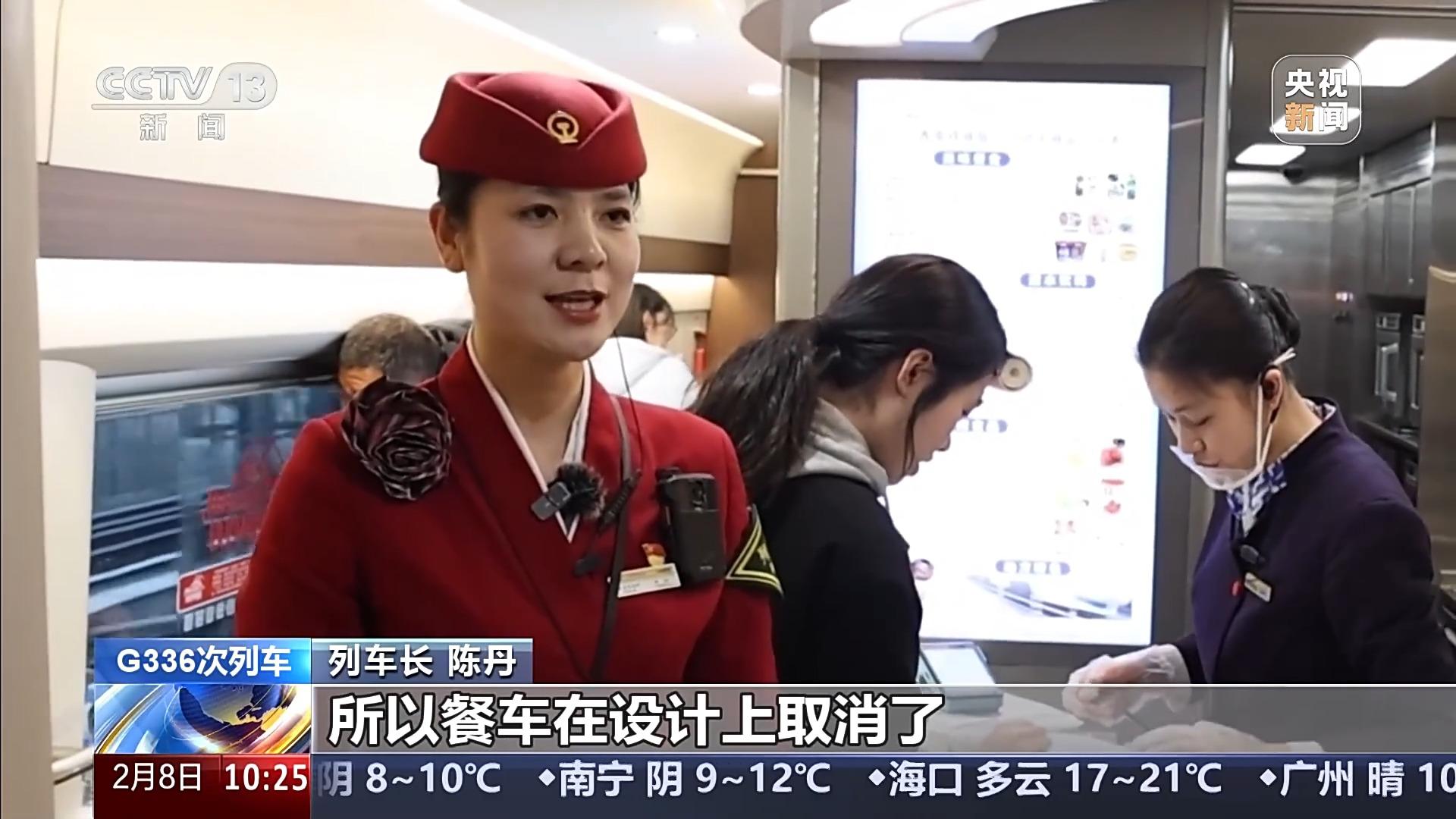 G336次列车长 陈丹:动车组因为速度快,空间较为密闭,不能使用明火,所以餐车在设计上取消了以前普速列车的烧煮区域,从一开始只有冷链到现在增添热链、现炒等餐食,旅客只需要在车上扫码点单或12306App下单即可。