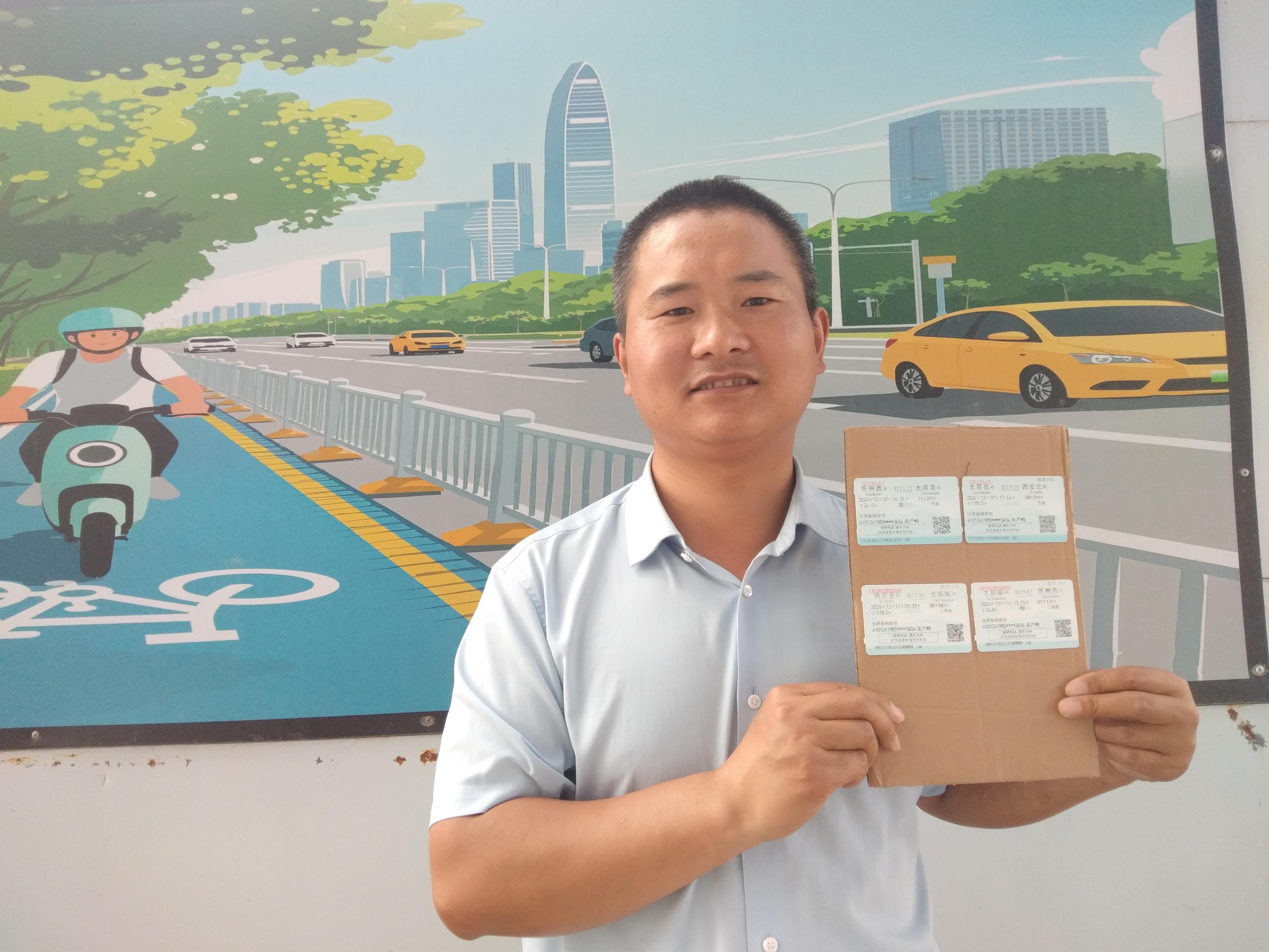 说着,张严峰从包里拿出4张纸片:“你看,这是我以前从忻州到太原再到西安的火车票,我还留着呢。”这些小小的纸质票根,是他多年在外打拼的见证。