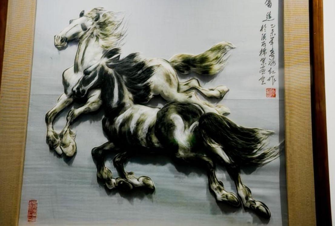 棉絮画源自清代晚期,以棉花为主要材料,融合布贴、刺绣等工艺,素有“东方立体国画”之称。在李海红及其团队的努力下,这门技艺通过师徒传承、校园推广、社区活动等方式持续焕发活力。展览中既有李福堂的《龙》系列、李海红的《牧云终南》等经典之作,也有汤瑶、贾伟花的《瑞马衔福》《丝路》等创新作品,以及小学生创作的《朱实三叠》《大唐圣僧》,展现出棉絮画在当代的生动传承。