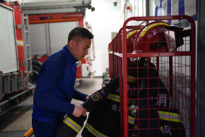 夜幕刚落,刺骨寒意便席卷而来。急促的哨声响起,海淀区双榆树消防救援站内传来咚咚的脚步声。