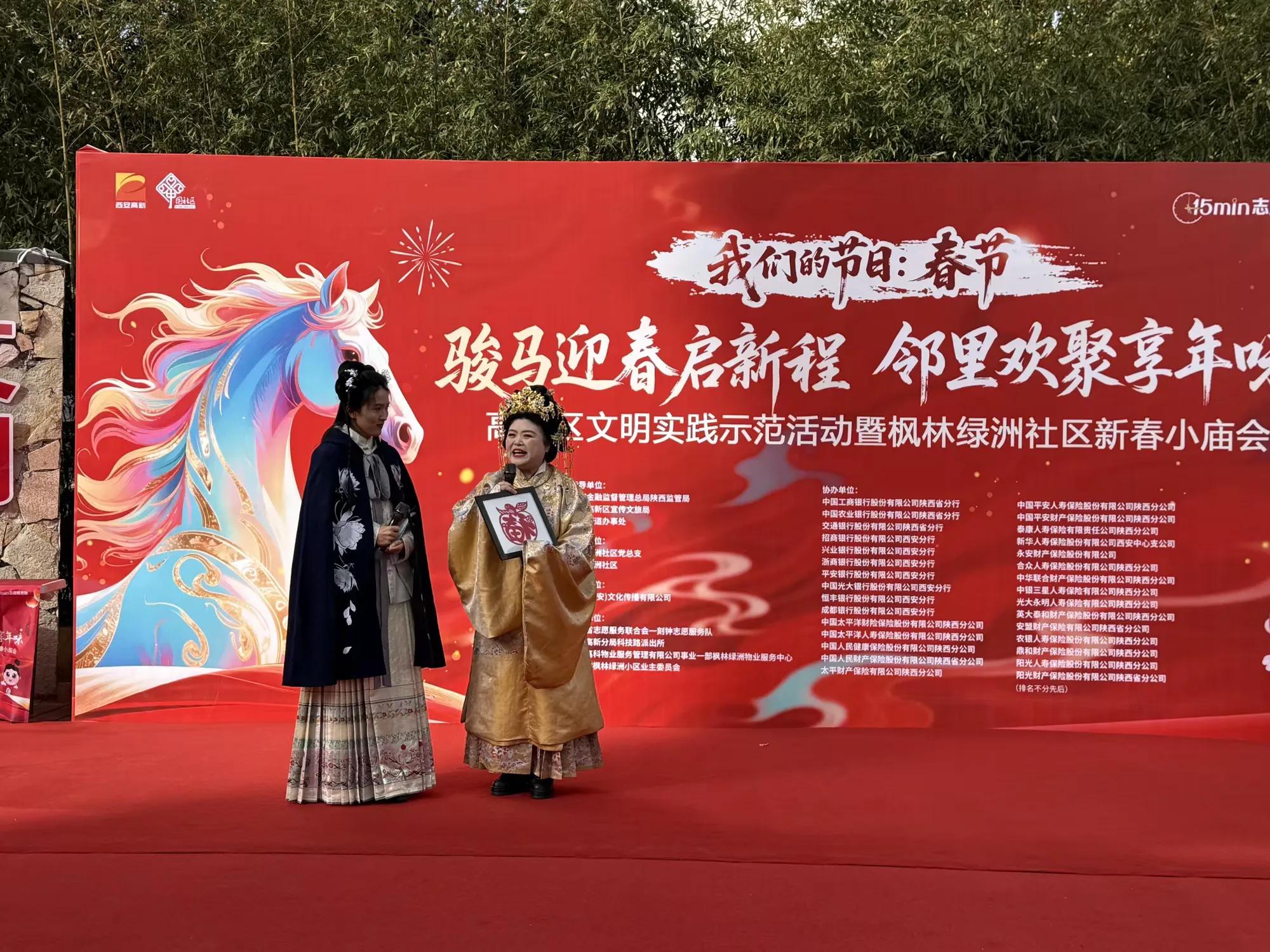三秦都市报-三秦网讯(记者 姬娜 实习生 何依燃)2月10日,“我们的节日·春节”西安高新区文明实践示范活动暨枫林绿洲社区新春小庙会举行。该社区以新时代文明实践站为平台,携手共建单位与居民,将传统年俗与现代服务巧妙融合,打造了一场有温度、有文化、有烟火气的邻里新春盛会。