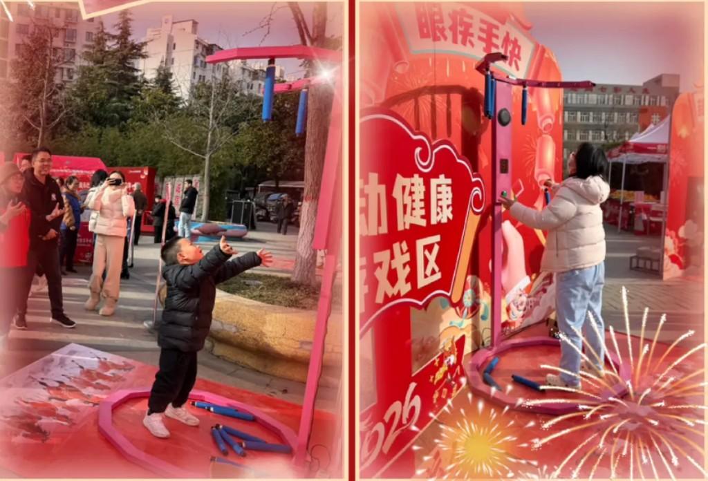 健康与趣味并重,“新年充电站”游戏区人气高涨。动感单车、快乐投篮、眼疾手快、趣味高尔夫、套圈圈等项目吸引大人小孩齐参与,欢声笑语不断。大家在运动中放松身心,在协作中拉近距离。